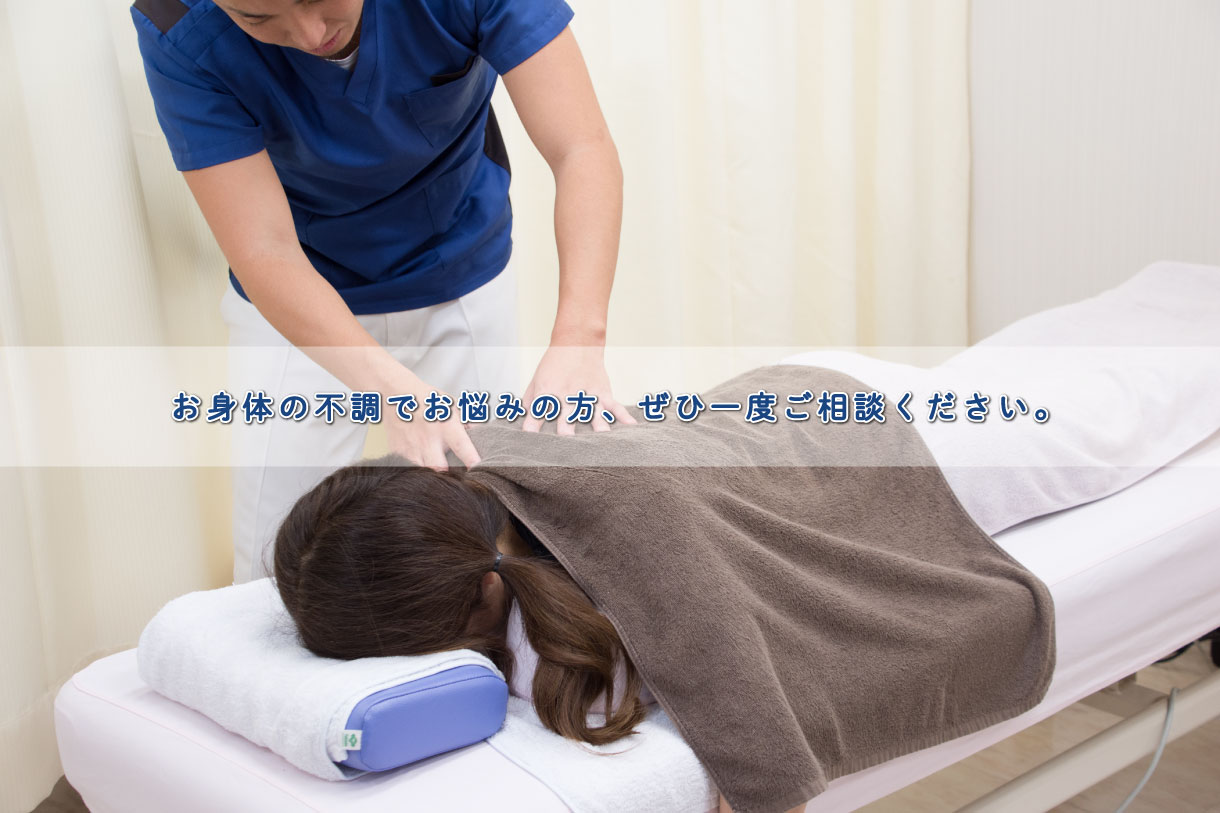 頭痛や肩こり、腰痛、腰まわり、脚全体の不調はお任せください。頭痛は頭だけでなく、お顔の表情筋、肩周辺、背中全体にも疲労が溜まることで起こっていることがあります。頭痛に関係する部位、急所を丁寧に、真剣に施術させていただきます。腰痛であれば、腰の前方であるお腹を含め骨盤全体から脚まで、脚の不調なら指先から足裏の施術も行っていきます。